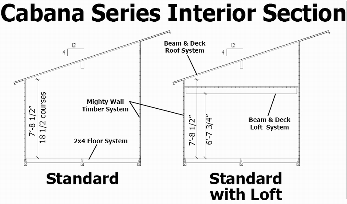 Custom configurations available upon request. Additions of more windows, doors, and front porch available. Windows and doors can be easily moved to match your needs. Standard roof overhangs are...Cabana - 36" front, 18" sides, 12" rear. Gable - 60" front, 12" sides, 3" rear